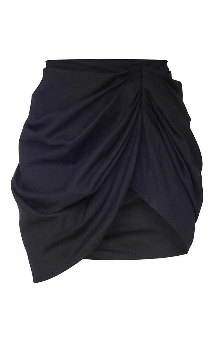 Look all kinds of glam in this skirt this season doll. Featuring a black material with a gathered design and a mini length. Style with a crop top and slip-on heels for a date with the dolls.