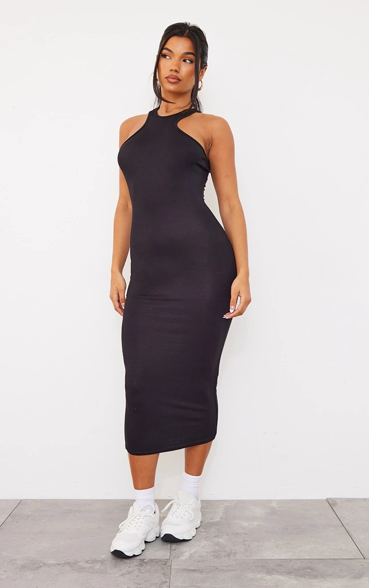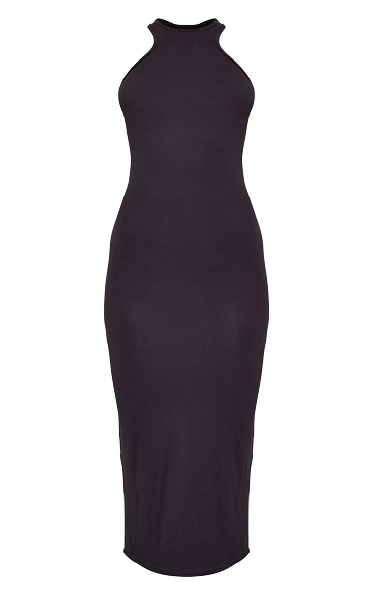 Give your look a serious update with this maxi dress. Featuring a black material with a racer neckline and a figure-skimming fit, what’s not to love? Team this with western boots and simple accessories to complete the look.