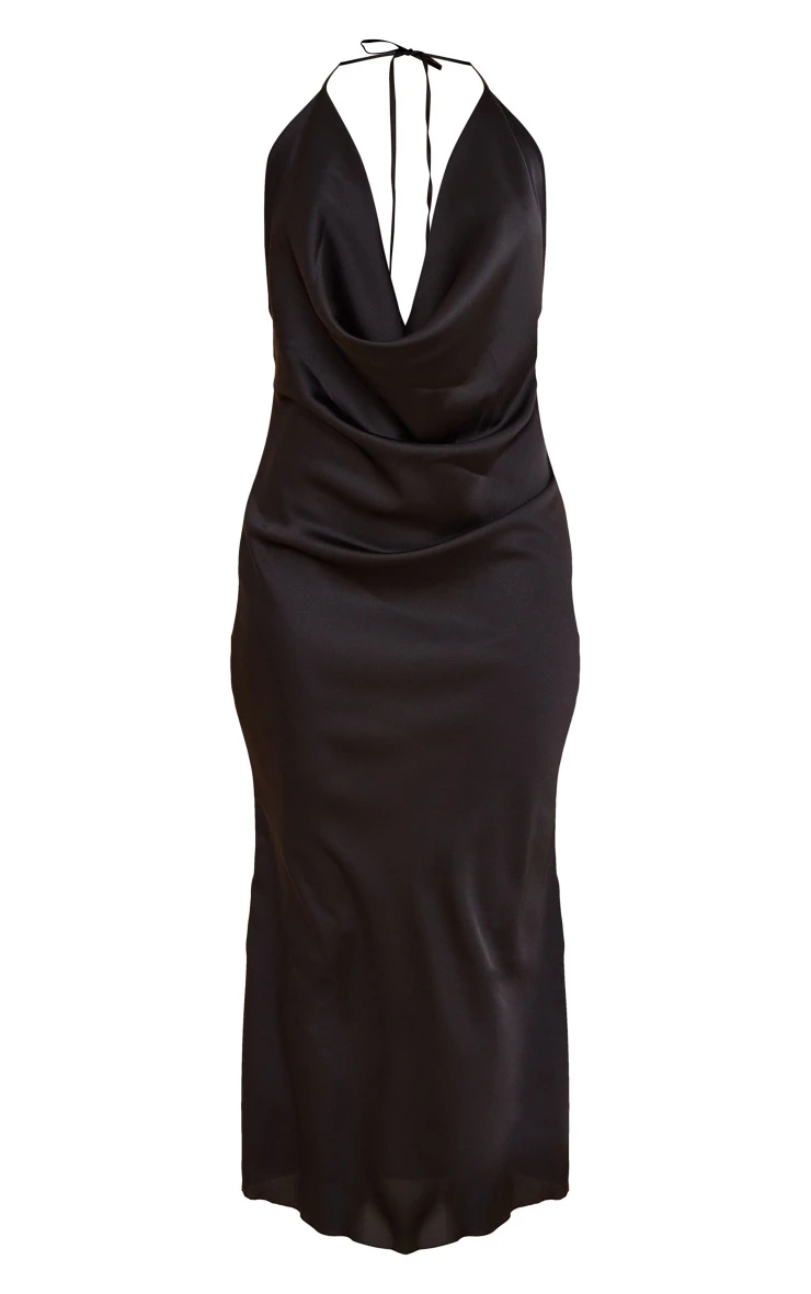 Glam up your weekend look with this black satin extreme cowl halter maxi dress. Its black satin material injects that instant luxe touch whilst its extreme cowl halter neck shows off your unreal figure. This maxi dress is a staple piece that can be worn for any special occasion you might have in the diary. Simply add clear heels and gold accessories for a vibe that won’t go unnoticed.