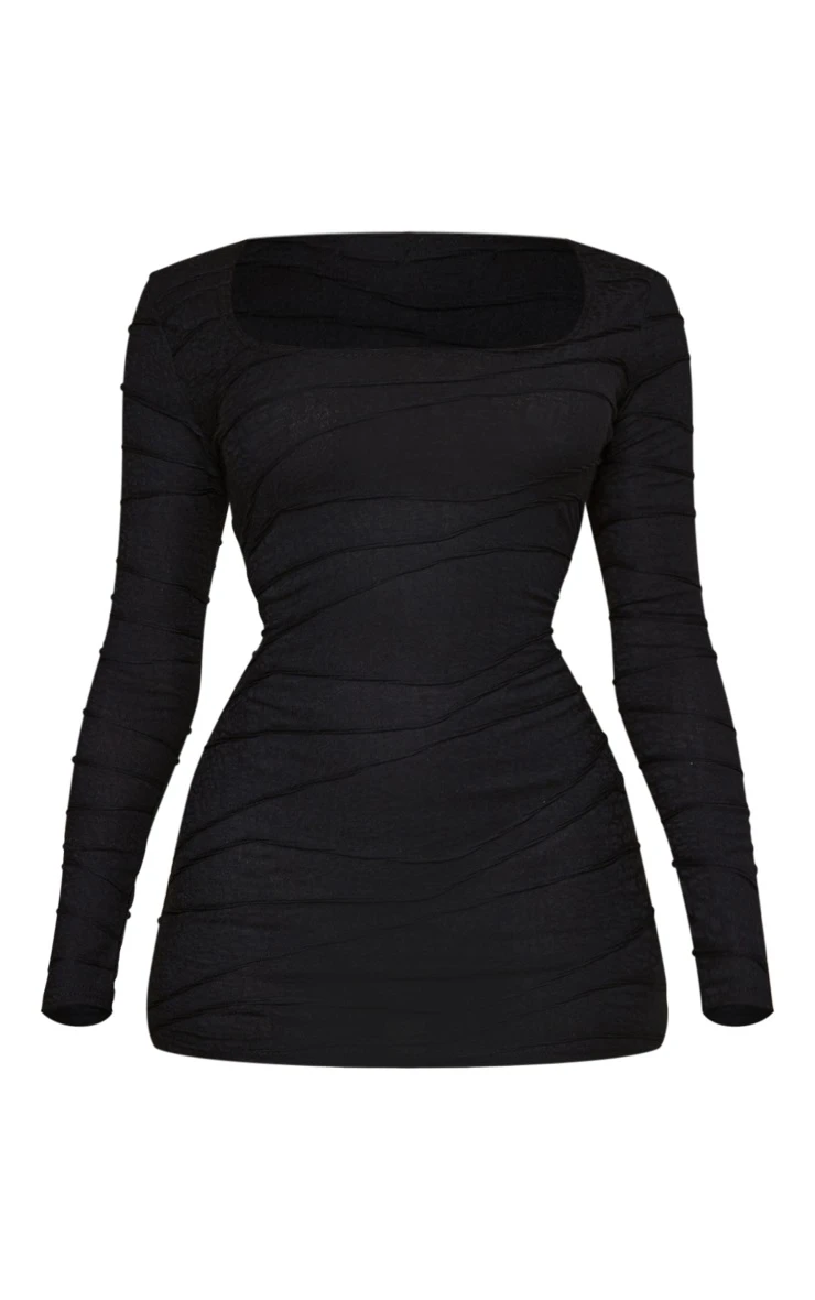 This staple bodycon dress is everything you need and more. Featuring a black textured material with a scoop neck, long sleeves and a figure-flattering fit, we are in love. Team with an oversized jacket, fresh kicks and accessories for a vibe that won’t go unnoticed.