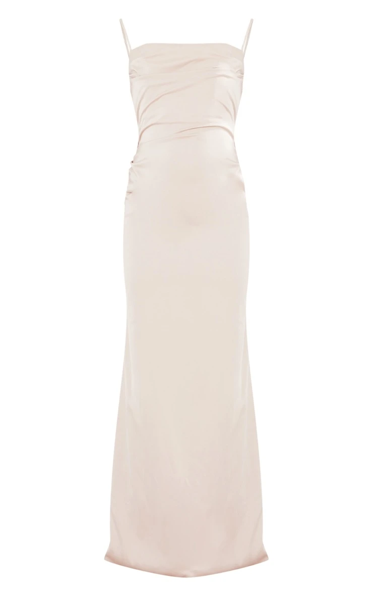 You are sure to be obsessed with this bridal champagne cowl back strappy maxi dress. This maxi dress is brought to you in a champagne material with a cowl back design for a flattering fit you won’t be able to resist. With strappy detailing and a maxi length, what more could you want doll? Team with some strappy heels and your go-to accessories to elevate the look to new heights.