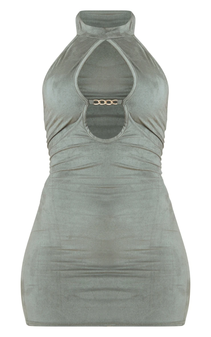Make a statement this season with this khaki faux suede chain detail high neck bodycon dress. This unreal dress is made from a faux suede material for a luxe look we are loving. With a chain detail and a high neck design, this bodycon dress is perfect for those next upcoming occasions. Team with some clear heels and your fave accessories to finish off the look everyone is obsessing over.