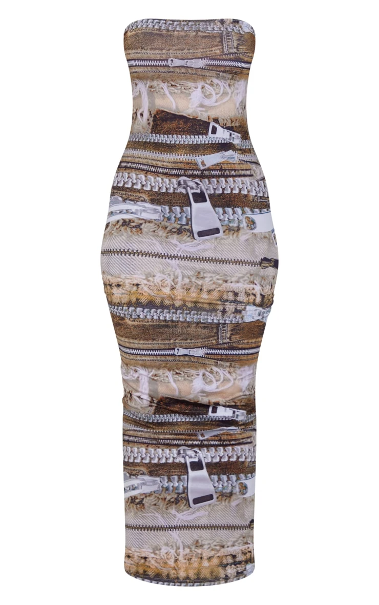 Hit refresh on your new season wardrobe with this petite brown bandeau denim print maxi dress, whether you’re getting ready for a night with the dolls or a date night with your significant other, this dress is sure to tick all the boxes. It is made with a brown denim print material with a bandeau style and a figure-worshipping fit, how could you not be in love? Wear with slip-on clear heels and a shoulder bag for a combo we’re crushing on.