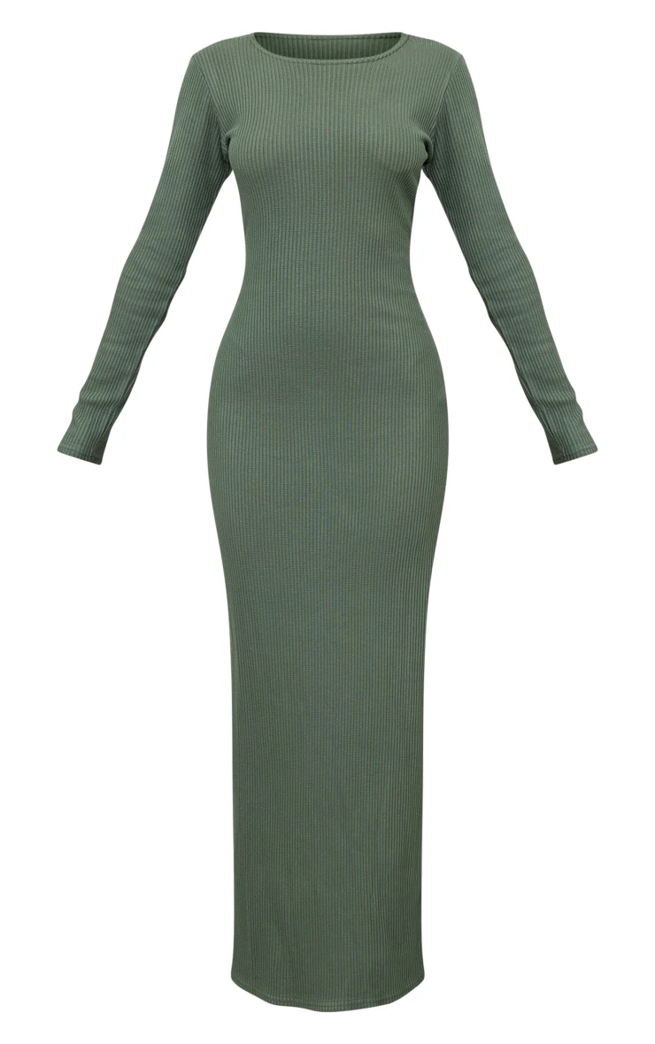 Glam up any look with this petite moss khaki brushed ribbed long-sleeve maxi dress with split. Whether you have a romantic date night planned or a special occasion on the horizon, this petite maxi dress is a perfect choice. With a moss khaki brushed ribbed material, long sleeves, and a split hem, what’s not to love? Team with clear heels and a mini bag for a dreamy finish.