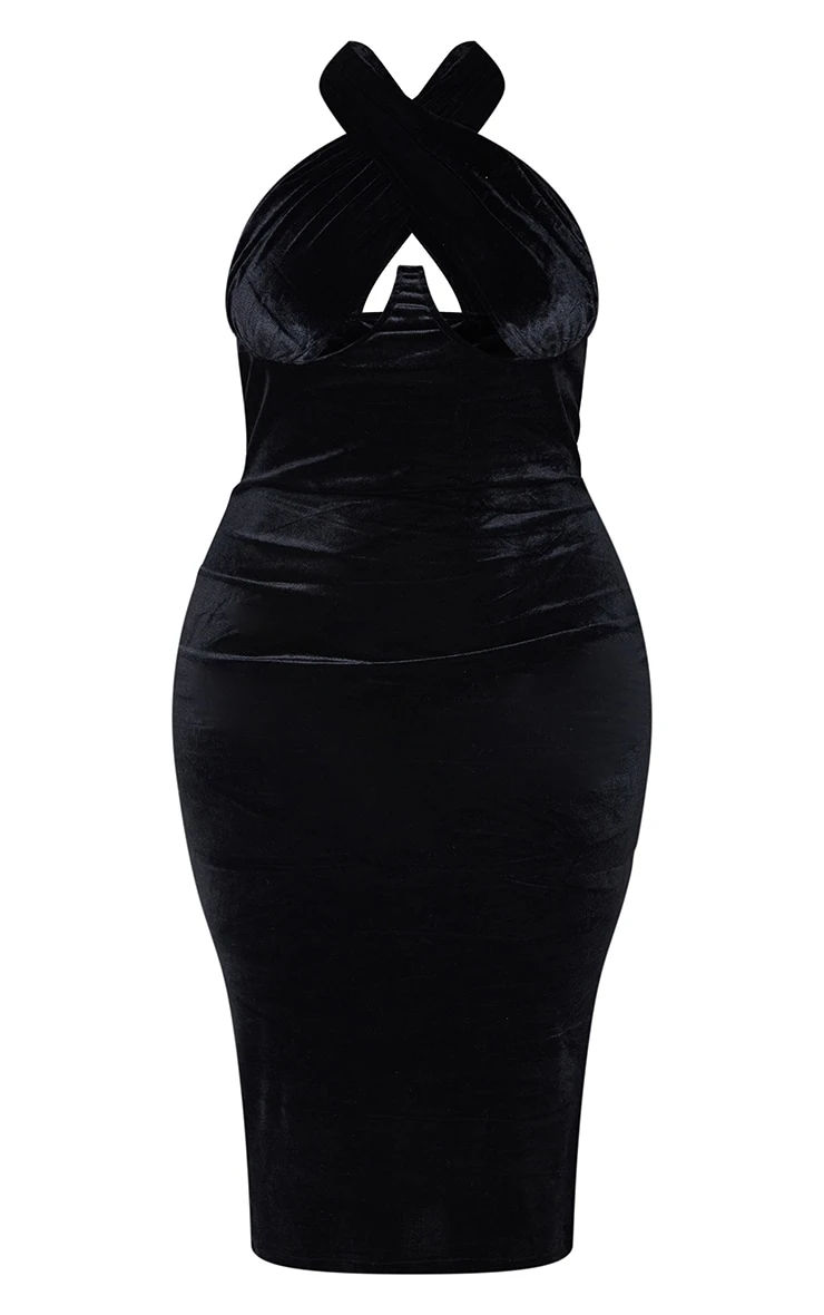 Add some serious glam vibes to your weekend look with this midi dress. Featuring a black velvet material with an underwired design and cross-front fit, what’s not to love? Wear with barely-there heels and simple accessories for a chic finsih.