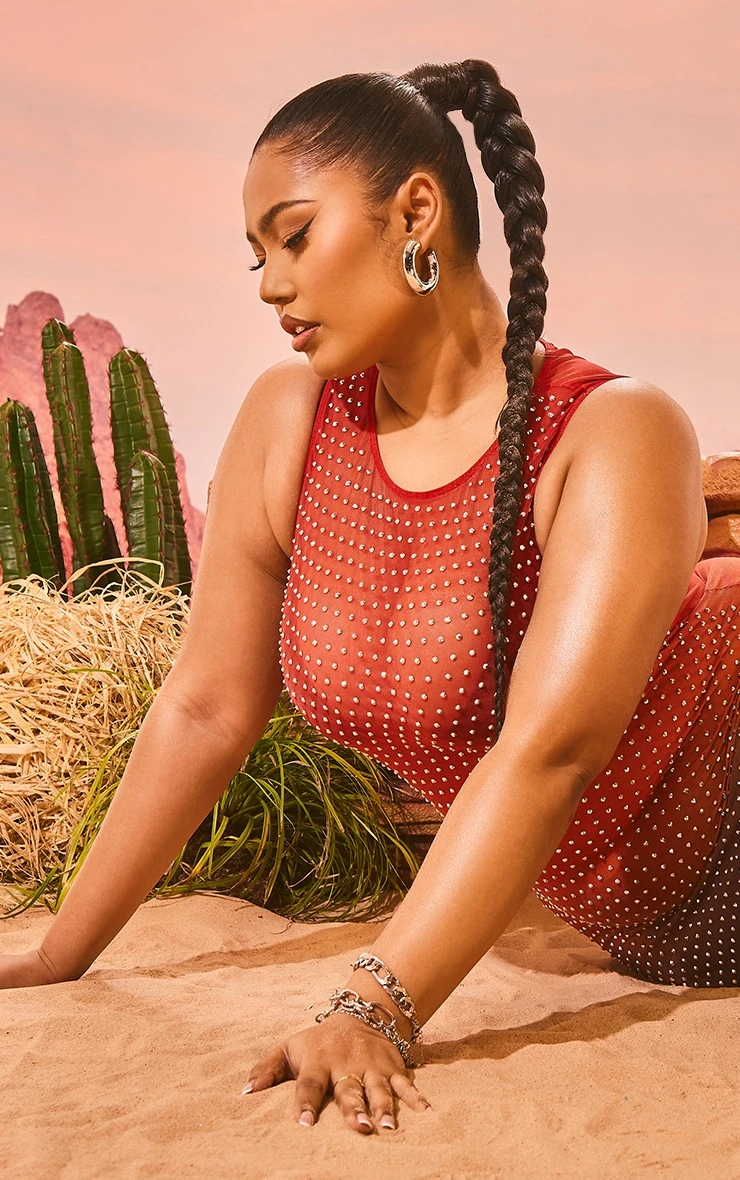 Turn heads for all the right reasons in this show stopping plus hot orange ombre embellished bodycon dress. Brought to you in a statement hot orange hue ombre material with an embellished design for that extra glam detailing and a figure-flattering bodycon fit, how can you resist? Style this plus dress with knee length heeled boots and statement accessories for a show stopping weekend ‘fit like no other.