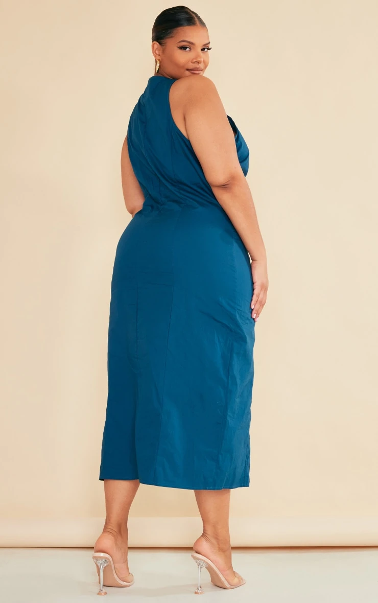 Give your weekend plans that insta-worthy finish with this plus petrol blue poplin sleeveless shirt midi dress. With a petrol blue hue material with a poplin fastening, sleeveless design and a super flattering fit. No matter what your plans are for the weekend this plus midi dress is a perfect choice for the occasion. Team with clear heels, gold accessories and a clutch bag for the ultimate dreamy finish.