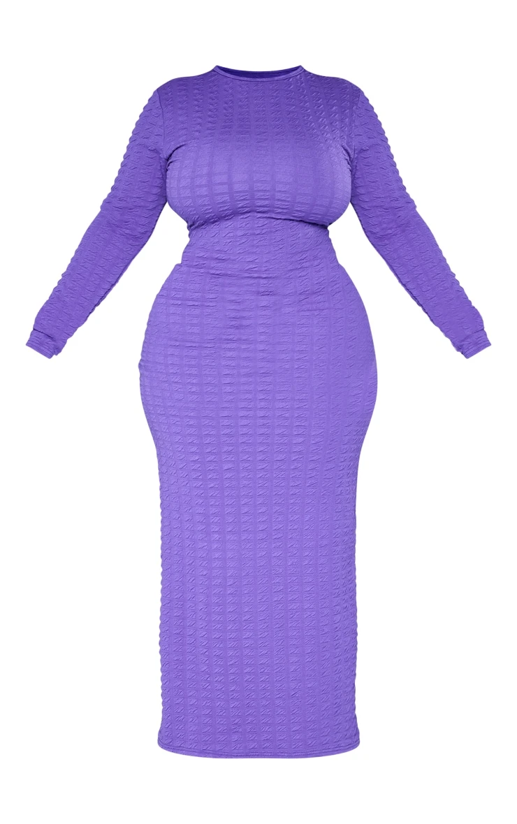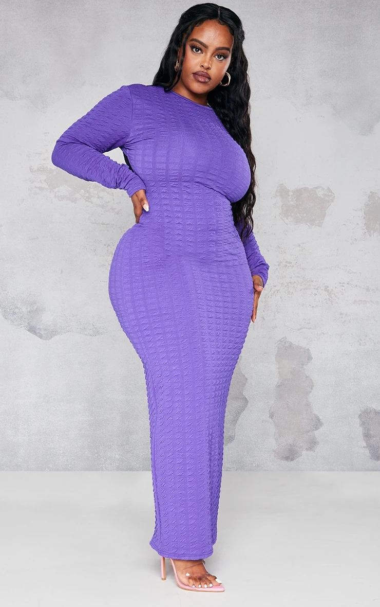 Make heads turn for all the right reasons in this midaxi dress. Featuring a purple textured material with a cut-out back and a figure-hugging fit, it’s perfect. Wear with strappy heels and a mini bag to really get noticed.
