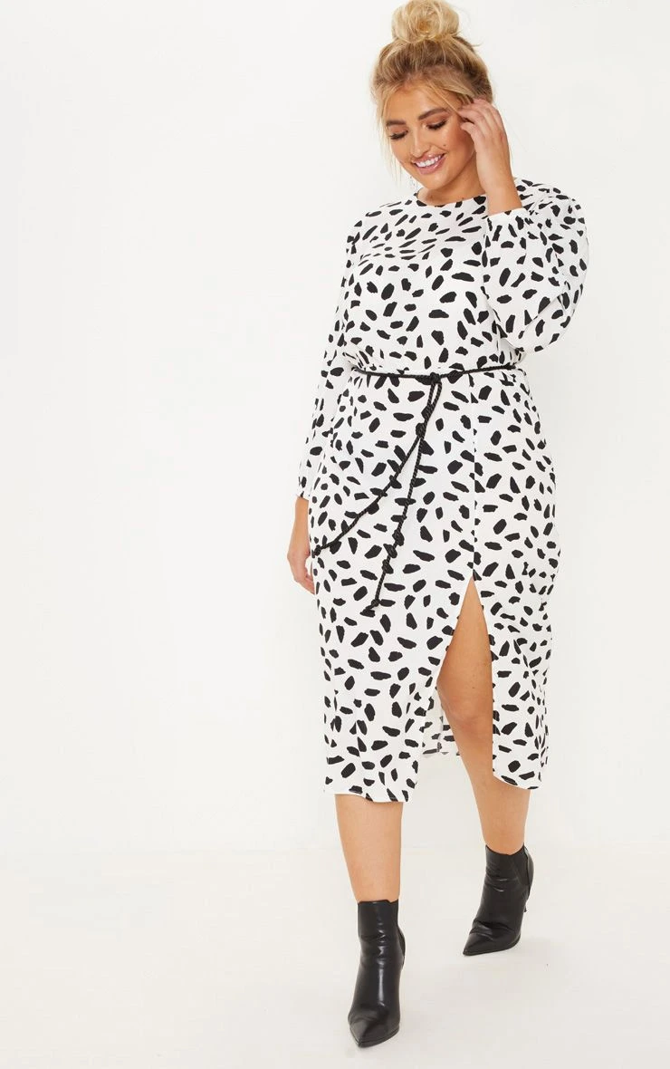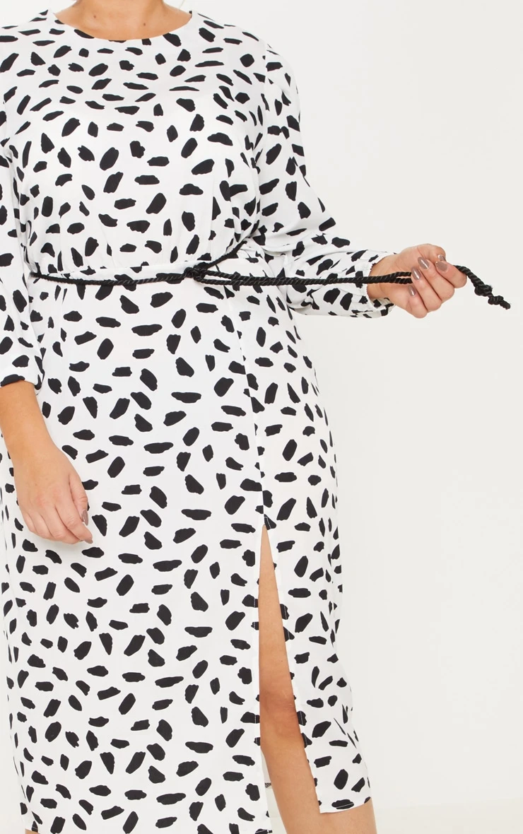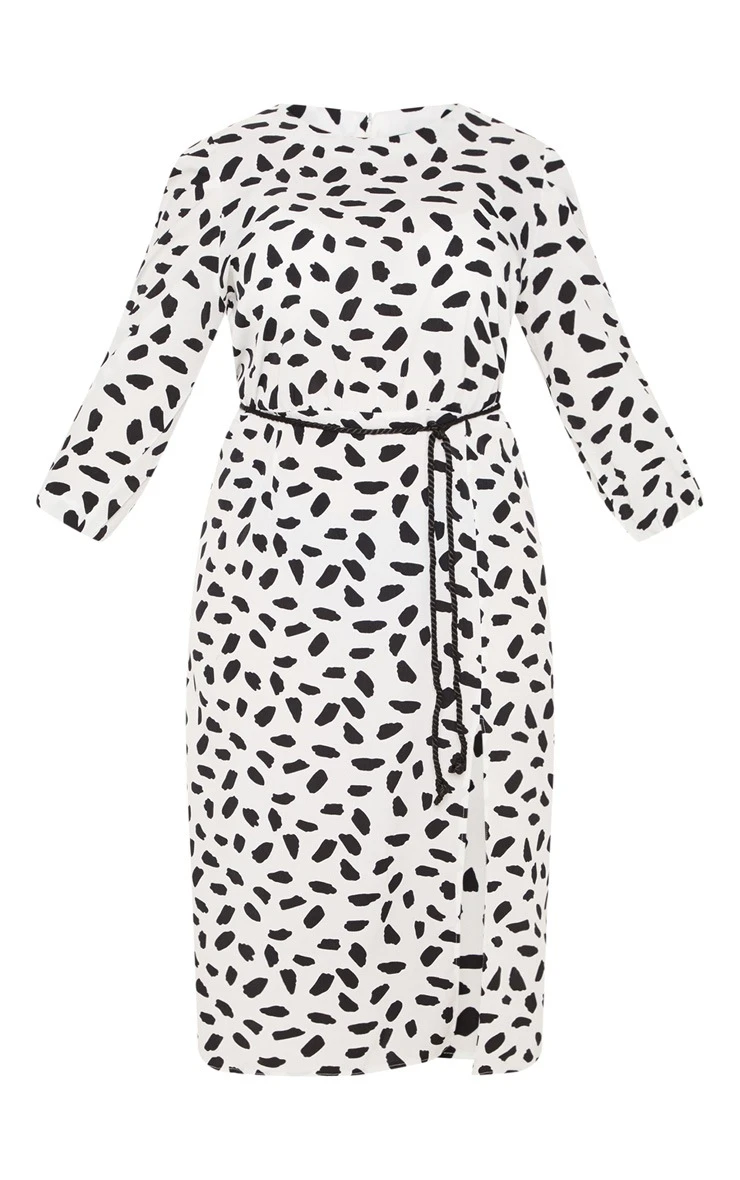 We are obsessing over all things animal print this season. This dress features a dalmatian print fabric, long sleeves and a rope belted waistline, team it with some heeled boots for a seriously chic combo.