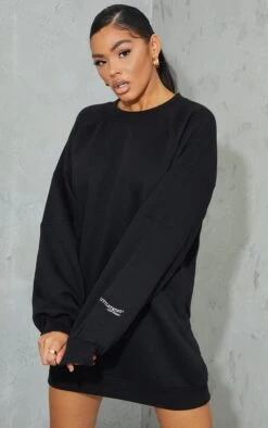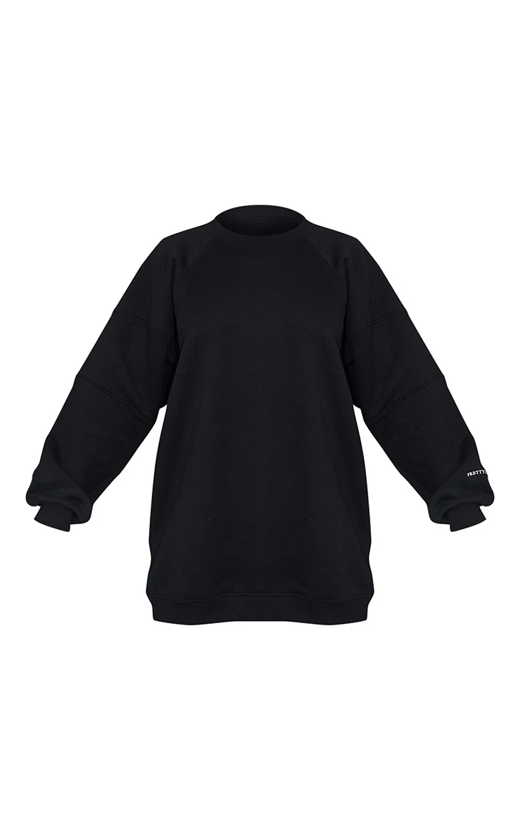 Get that effortlessly chilled vibe on-point with this dress. Featuring a black hue sweat material with a ‘PrettyLittleThing’ printed design and raglan sleeves. Style with lace-up boots and simple accessories for a chic, off-duty combo.