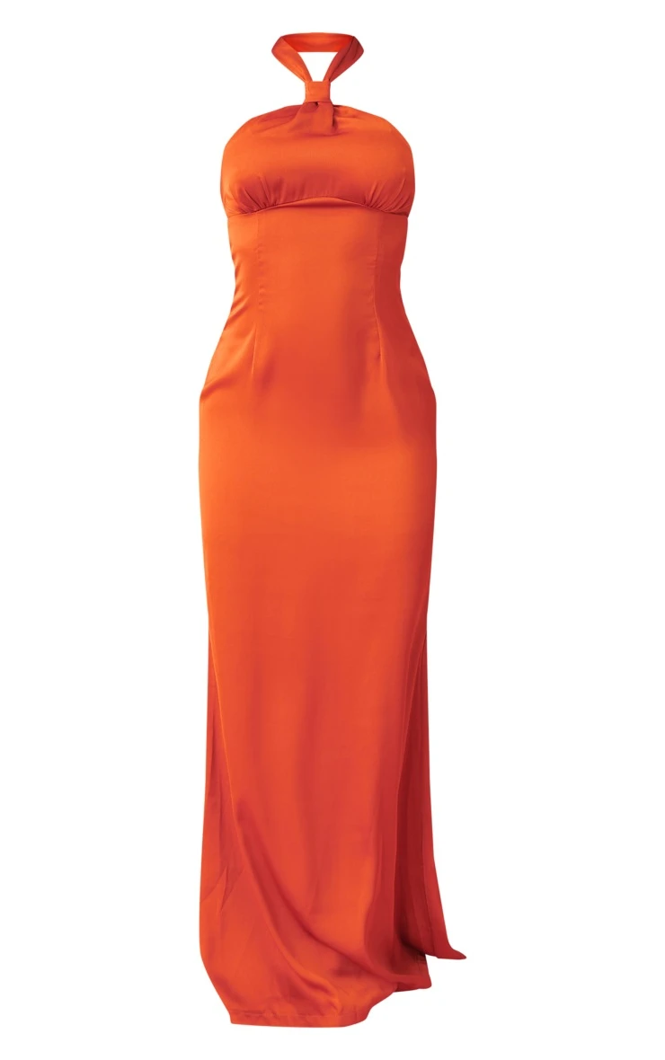 Channel all the dreamy hues with this rust satin underbust detail knot halterneck maxi dress. With it’s rust satin hue along with a knot halterneck completed with a maxi length, you will sure to have heads turn for all the right reasons. To complete the look pair this with your dreamy accessories and high heels for a glam finish.