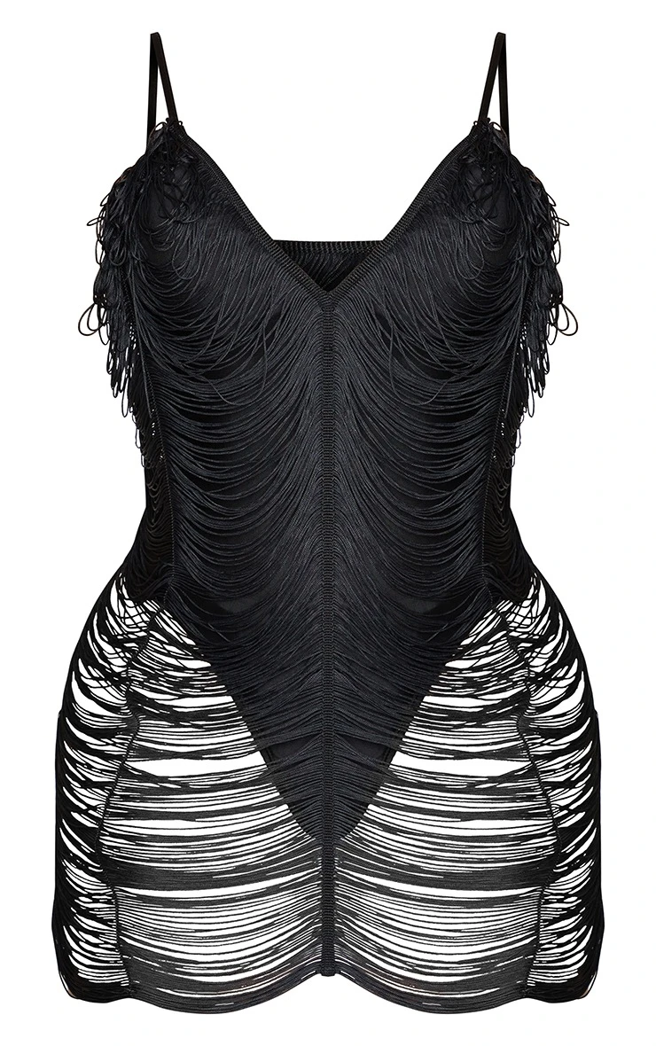 Hit refresh on your weekend wardrobe with this dress. Featuring a black material with a fringe design and a bodycon fit. Style with clear strap heels and statement accessories for a date with the dolls.