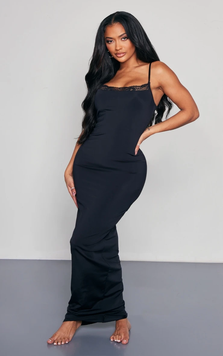 Get ready to show off your shape with this figure-worshipping shape black lace detail matte sculpt maxi dress. This unreal dress is made from a black material with a lace detail for some sultry vibes you won’t be able to resist. With a matte sculpt design and a maxi dress, we are obsessed. Team with some clear heels and your fave accessories to complete the look.