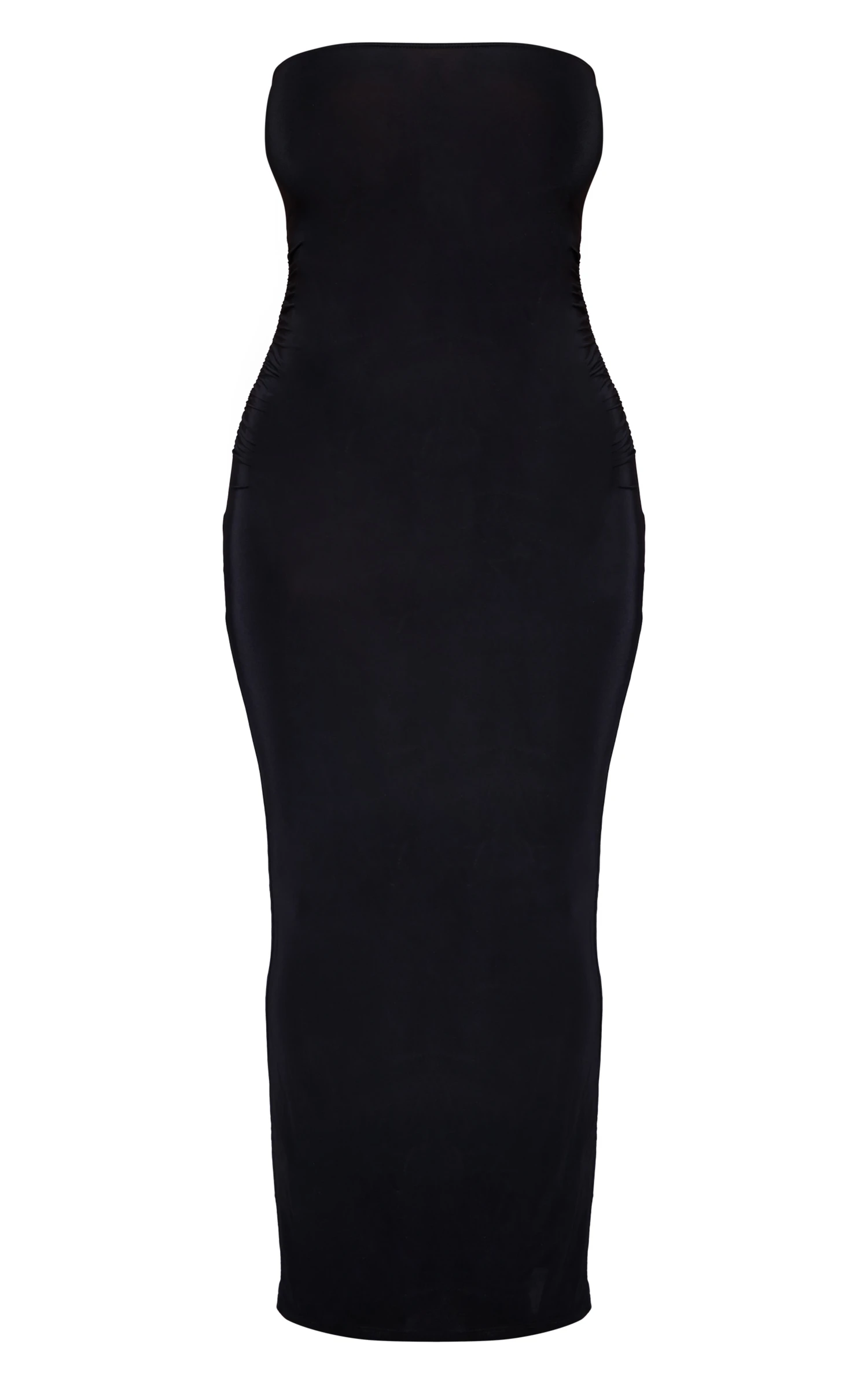 Give your new season wardrobe the upgrade it deserves with this shape black slinky bandeau ruched side midaxi dress. You’re sure to have heads turning doll. This dress features a black slinky material with a ruched side design and a midaxi length, we’re in love. This dress has the perfect figure-flattering design that is sure to have you feeling your best. Just add your fave accessories for a flawless finish.