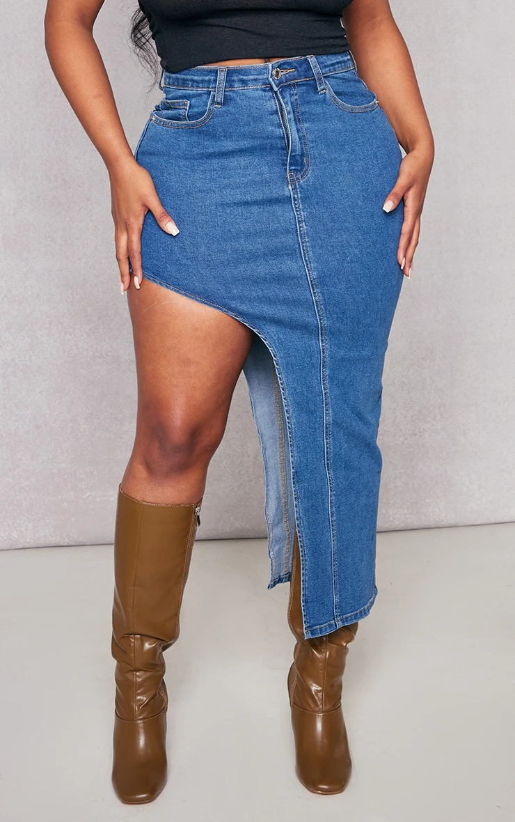 Make them stop and stare in this shape dark blue denim split side midaxi skirt. This midaxi skirt is brought to you in a dark blue denim that will have you feeling on trend all season. With a split side detail, this midaxi skirt will have you showing off your shape in all the right places, what’s not to love? Team this unreal skirt with a basic tee and some knee high heeled boots to make heads turn whatever the occasion.