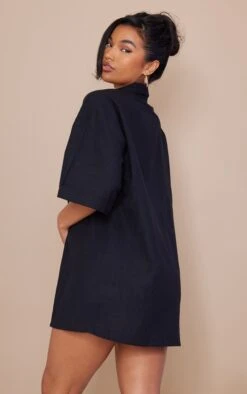 Black Linen Look Oversized Double Breasted Short Sleeve Blazer Dress