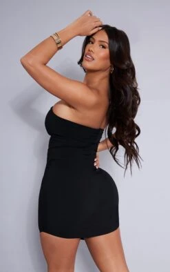 Shape Black Slinky Bandeau Ruched Side Frill Hem Bodycon Dress