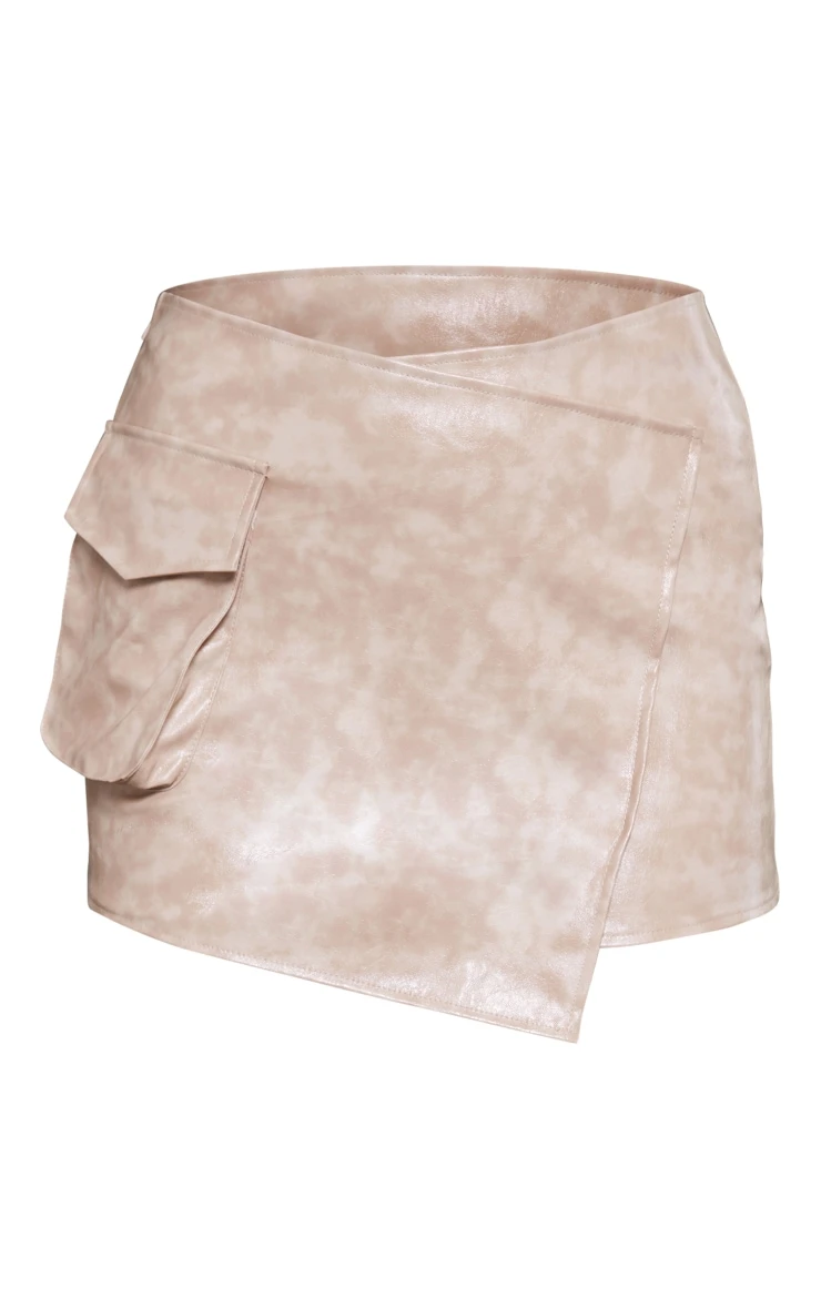 We are obsessing over this mini skirt to instantly elevate your wardrobe. Featuring a stone faux leather material with a pocket and a micro mini length. Style with a basic top and clear heels for the perfect weekend fit.
