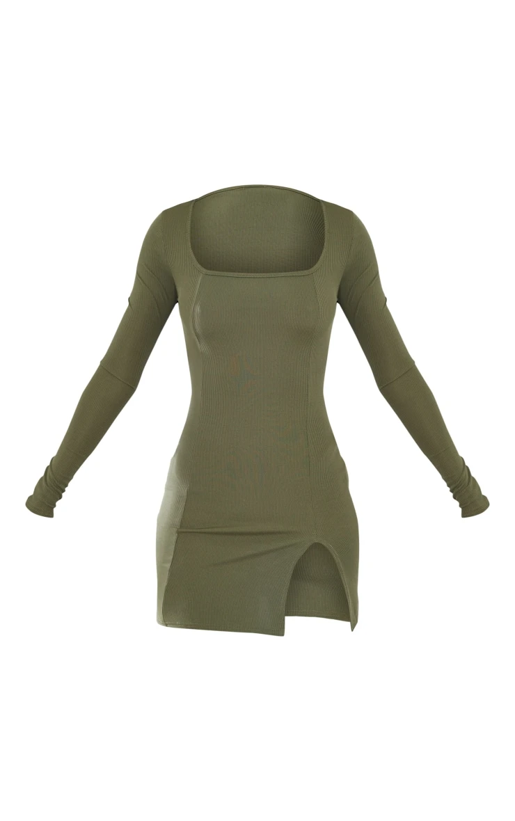 Add some of this season’s must-have tones into your look with this dress doll. Featuring a khaki ribbed material with a split hem design, a square neck and long sleeves. We are loving this styled seamlessly with stone knee-high boots and accessories for the perfect combo.