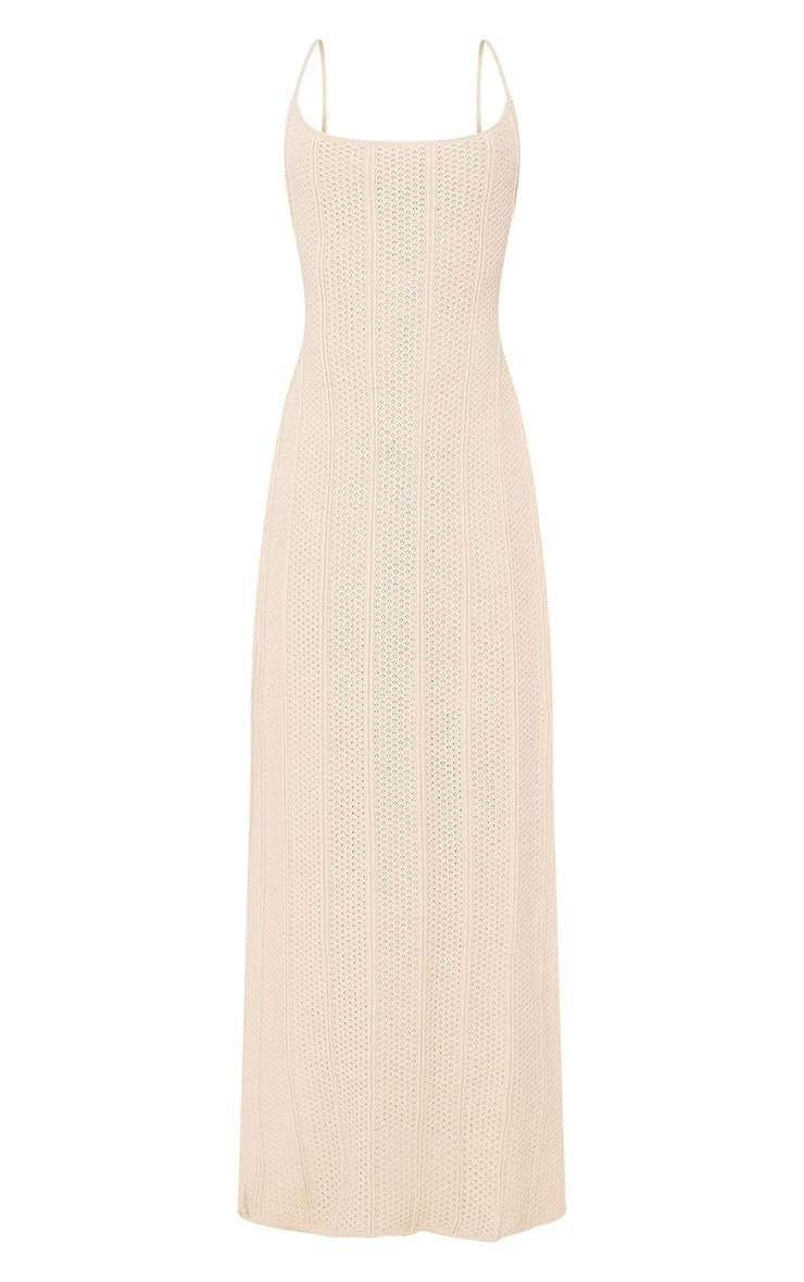 Add some fiercely feminine vibes to your weekend with this dress. Featuring a stone knitted material with a low back design, extreme side split detail and a maxi length. Style this effortlessly with sandals and a gold anklet to get the look.