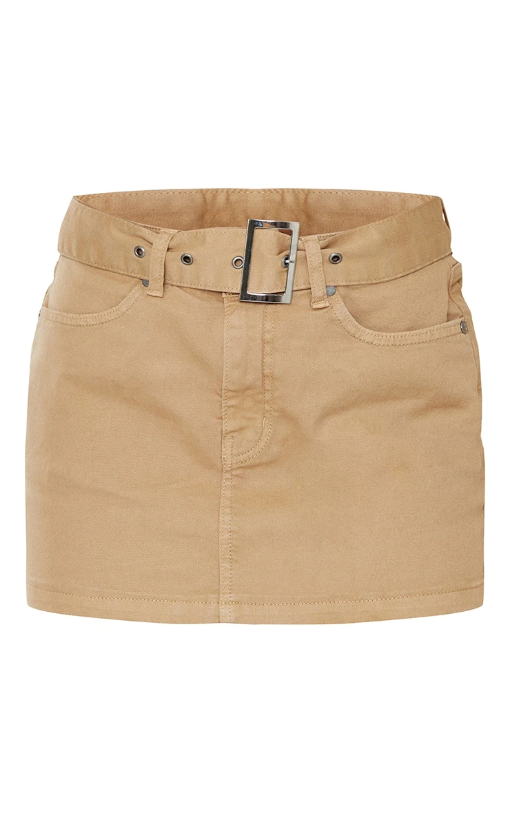 We are loving this skirt for your new season wardrobe. Featuring a tan denim material with a belted design and a mini length, what’s not to love? Style with a crop top, heels and a mini bag for fierce, weekend-worthy fit.