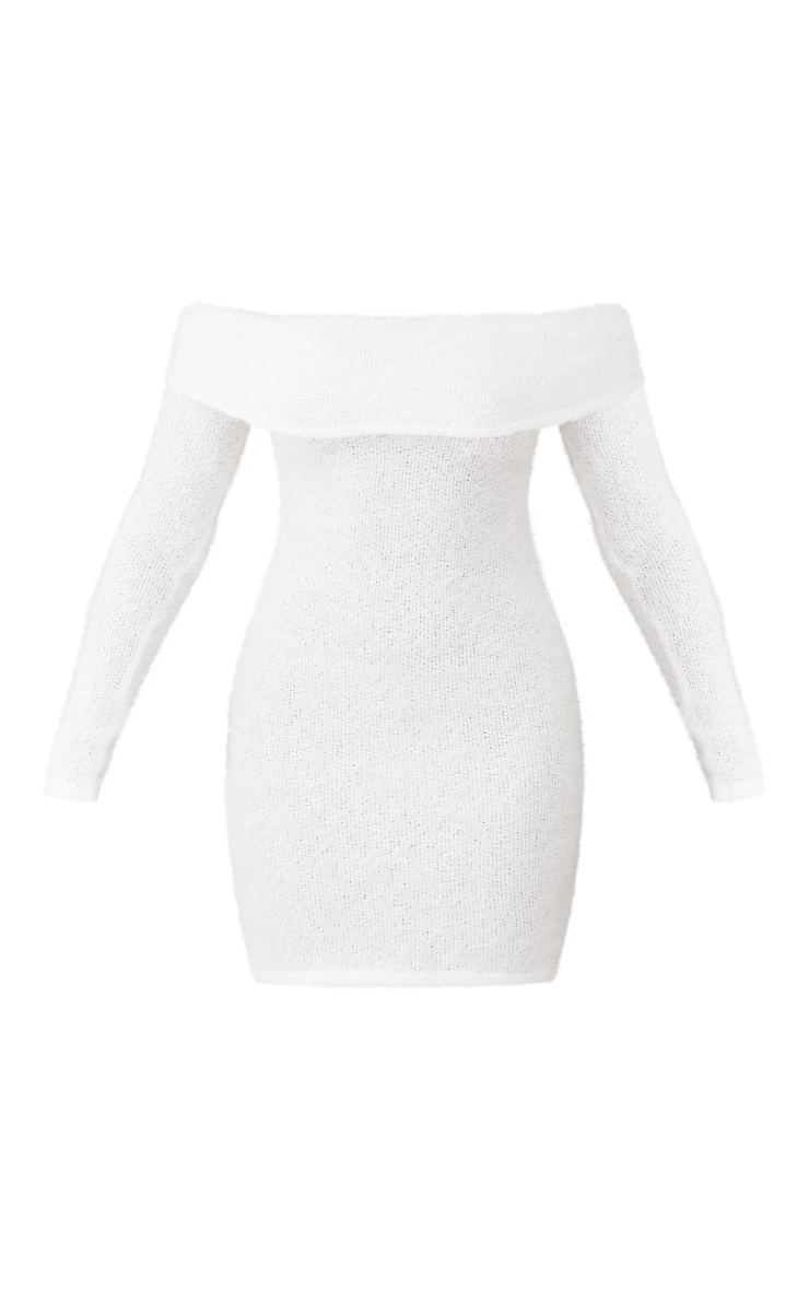 Add some cosy vibes to your weekend look with this white eyelash know bardot bodycon dress. We know it’s a must-have for any collection. Made using a white eyelash knit material with a figure-worshipping fit that hugs all the right places, what more could you need from women’s dress? It gets a yes from us. Simply pair with fresh kicks, gold hue accessories and a shoulder bag for some easy weekend styling that is perfect for making a statement.